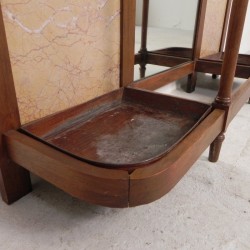 On top of the corners (above the brass panels with floral motifs) holes from hooks that used to be there, have been filled.