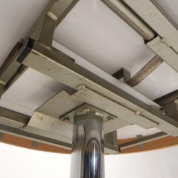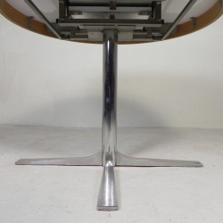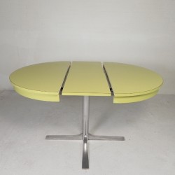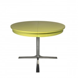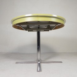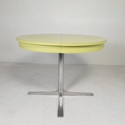 This round vintage dining table combines functionality with the warm look of the 1970s.