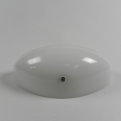 A steel plate is mounted to the wall, after which the glass shade is secured to the plate with a single screw.