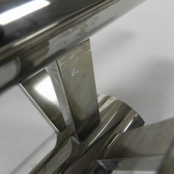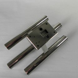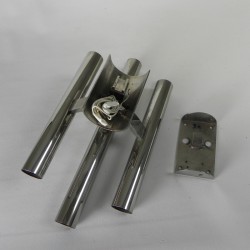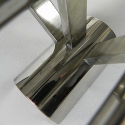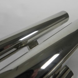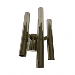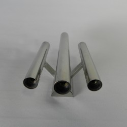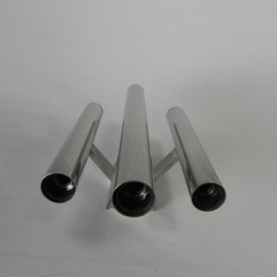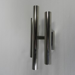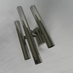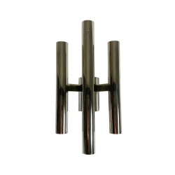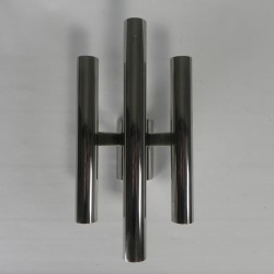 This striking wall lamp consists of two chrome-plated tubes (Ø 3 cm, 22 cm long) and one tube (Ø 3 cm, 30 cm long).