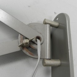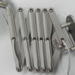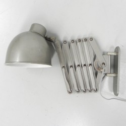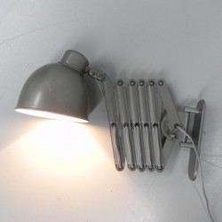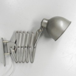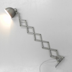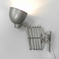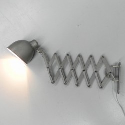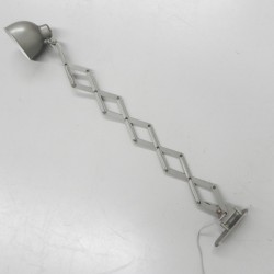 Height: 28 cm.Width: 15.5 cm.Depth: 37-110 cm.Ø Cap:: 15.5 cm.The lamp has a large bulb holder (E27).Origin: Belgium, 1950s.Material: steel.