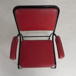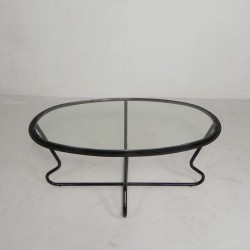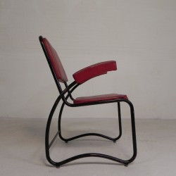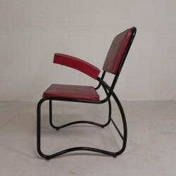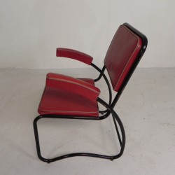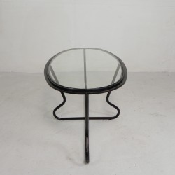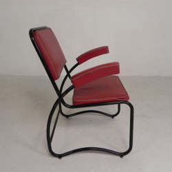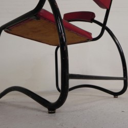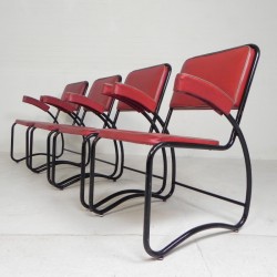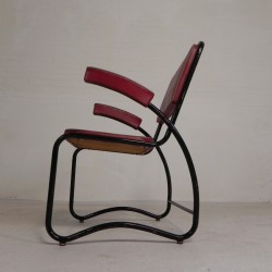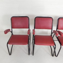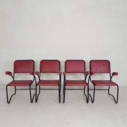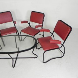 Set of four comfortable armchairs with a matching coffee table, featuring a sleek Bauhaus-style tubular frame, 1950s.
