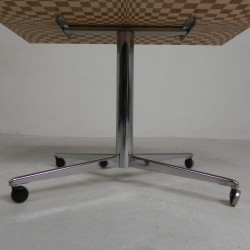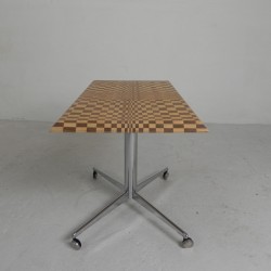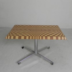 Unique coffee table from the 1990s, constructed from hundreds of wooden blocks in a psychedelic pattern.