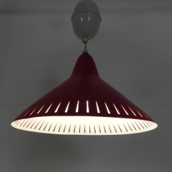 The aluminum shade features dozens of teardrop-shaped openings along the edge through which the light shines beautifully.