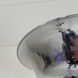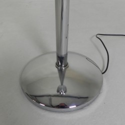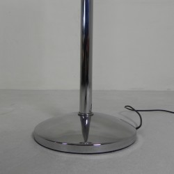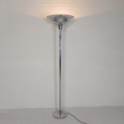 Sfeervolle staande uplight uit de jaren ’30, met de kenmerkende Art Deco-stijl: strakke lijnen, brede kap, luxe materialen en een warm licht dat prachtig omhoog schijnt.