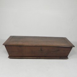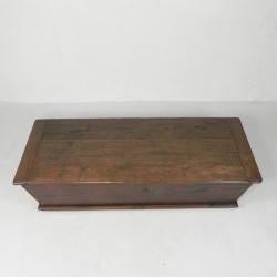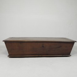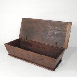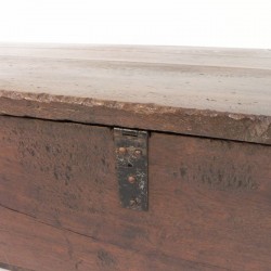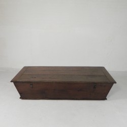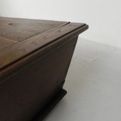 Deze robuuste eikenhouten kist uit de 19e eeuw werd traditioneel gebruikt als dekenkist of opbergtrog in boerderijen en woonhuizen.