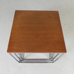 Materiaal: teak fineer, verchroomd messing.