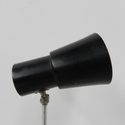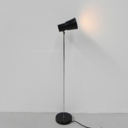 Hoogte: 93 cm.Breedte: 15 cm.Diepte: 15 cm.lengte kap: 15 cm.De lamp is voorzien van een grote fitting (E27).Herkomst: Nederland, jaren '60.Materiaal: aluminium / staal.