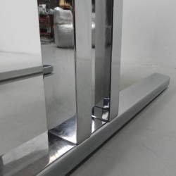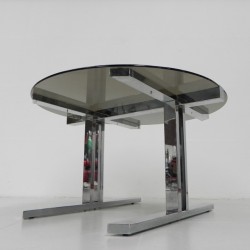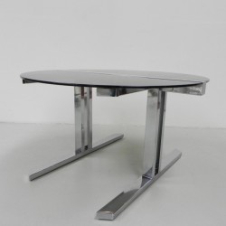 Prachtige vintage eettafel met robuuste verchroomde poten.