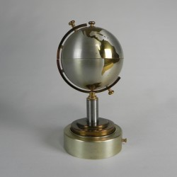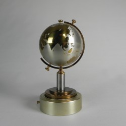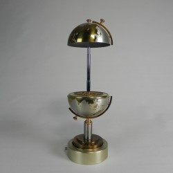 Unieke vintage wereldbol uit de jaren 60, ontworpen als sigarettenhouder met geïntegreerde muziekdoos.