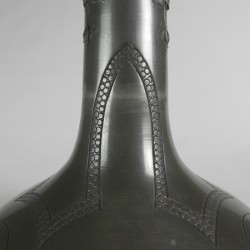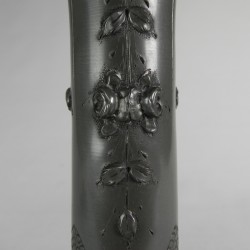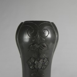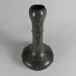 Prachtige Art Nouveau tinnen vaas uit het begin van de 20e eeuw, versierd met sierlijke bloemmotieven en gesigneerd ”PENCHEZ” ”ETAIN ARTISTIQUE”.