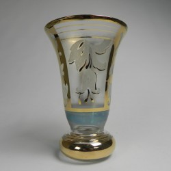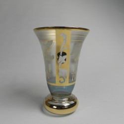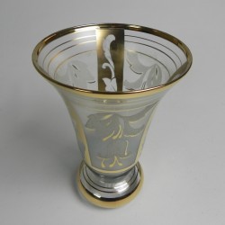 Deze vaas is voorzien van 3 verticale gouden banden.