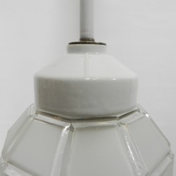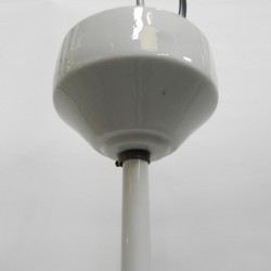 Deze hanglamp heeft een porseleinen kaphouder onder
