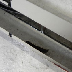 Daarna kan de onderste rail (met de verchroomde bollen) bevestigd worden door de onderste rail in de beugeltjes van de bovenste te schuiven.