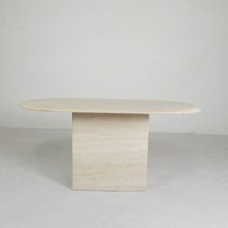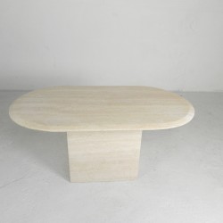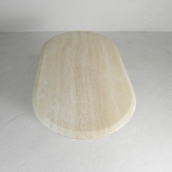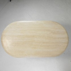 Deze tafel is handgemaakt van prachtig glad travertin.