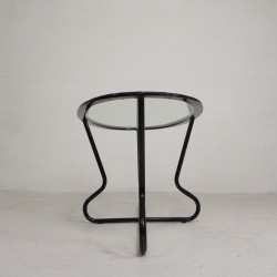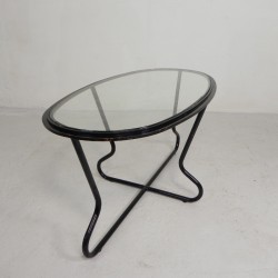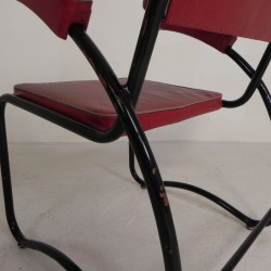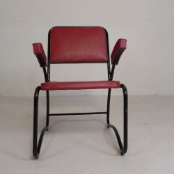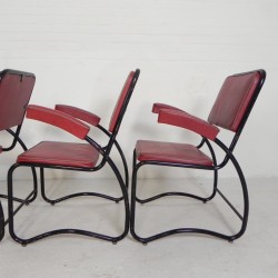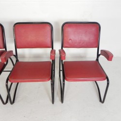 Set van vier comfortabele armstoelen met bijpassende salontafel, uitgevoerd in een strak buizenframe in Bauhaus-stijl, jaren ’50.